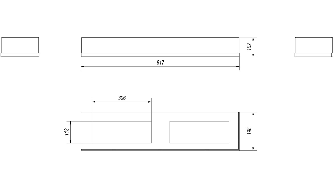 Biokominek DELTA prawa 900x280 z szybą