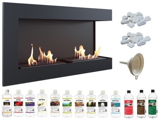 Biokominek DELTA prawa 900x280 + zestaw 13 różnych biopaliw