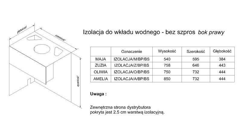 izolacja do wkładu z płaszczem wodnym Zuzia bok prawy BS