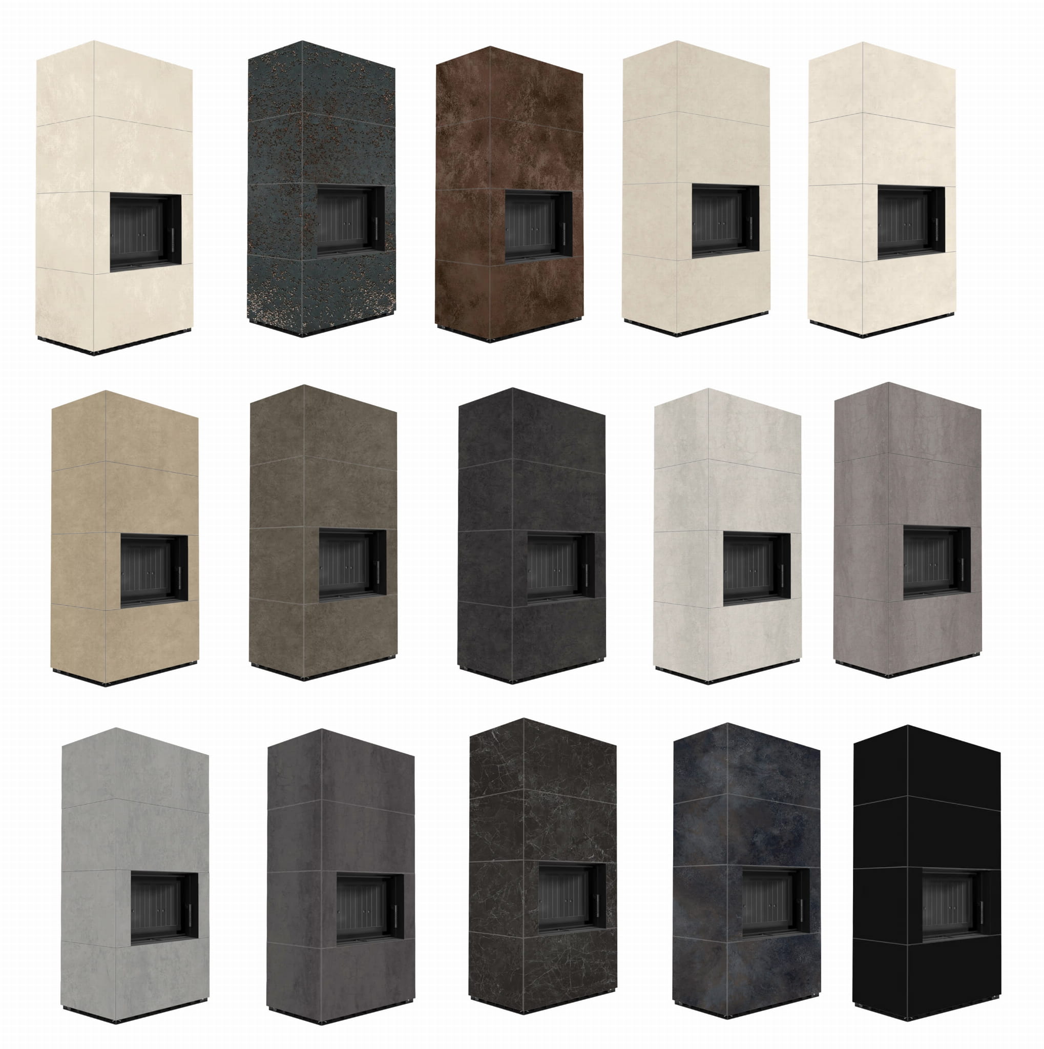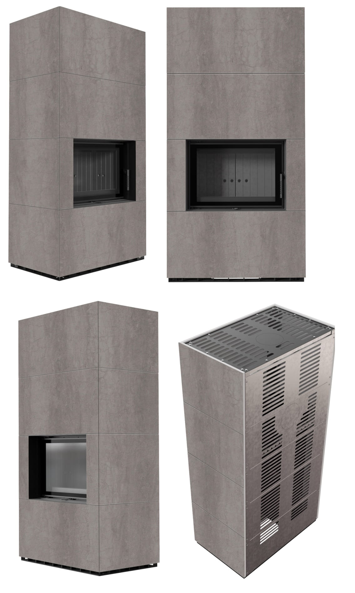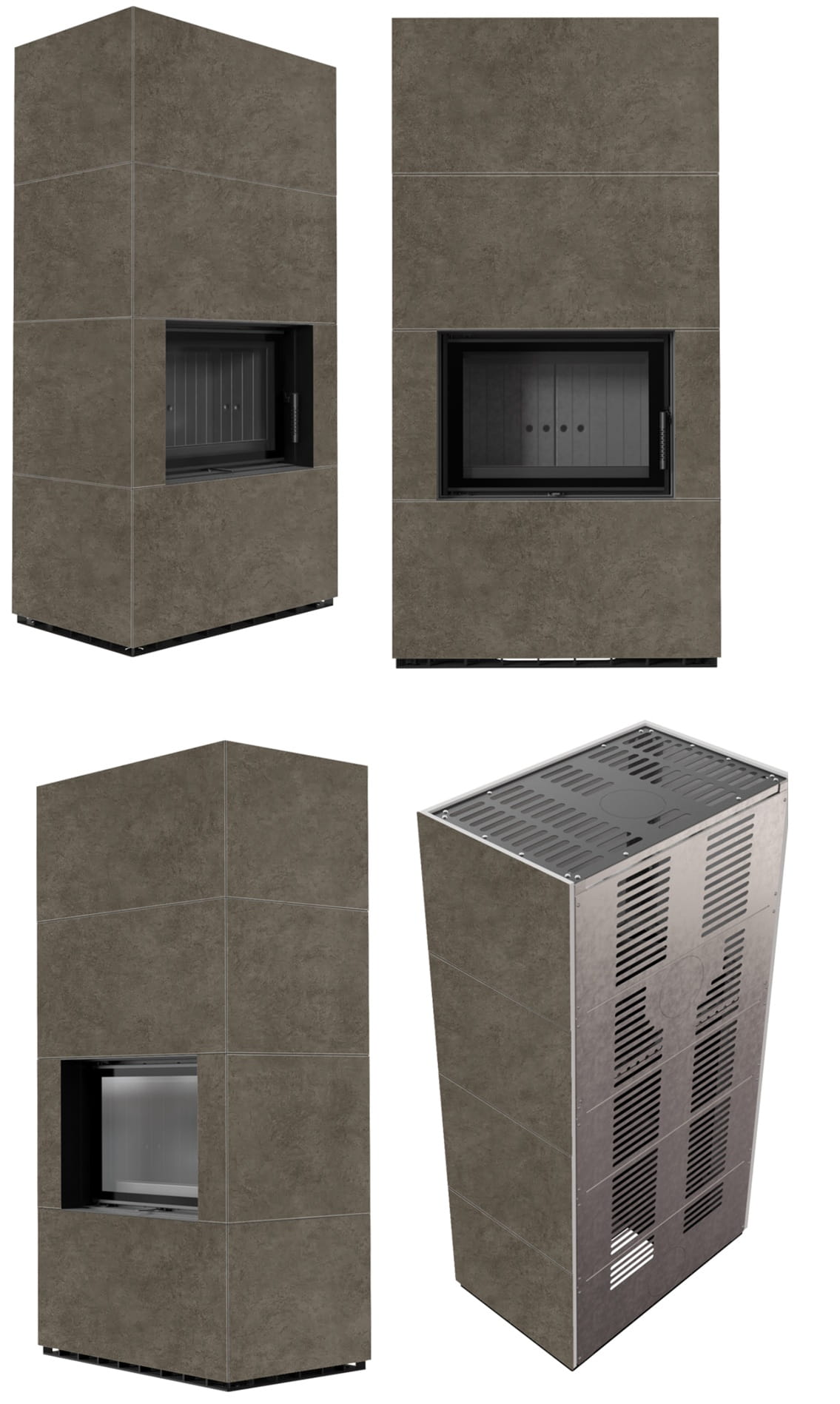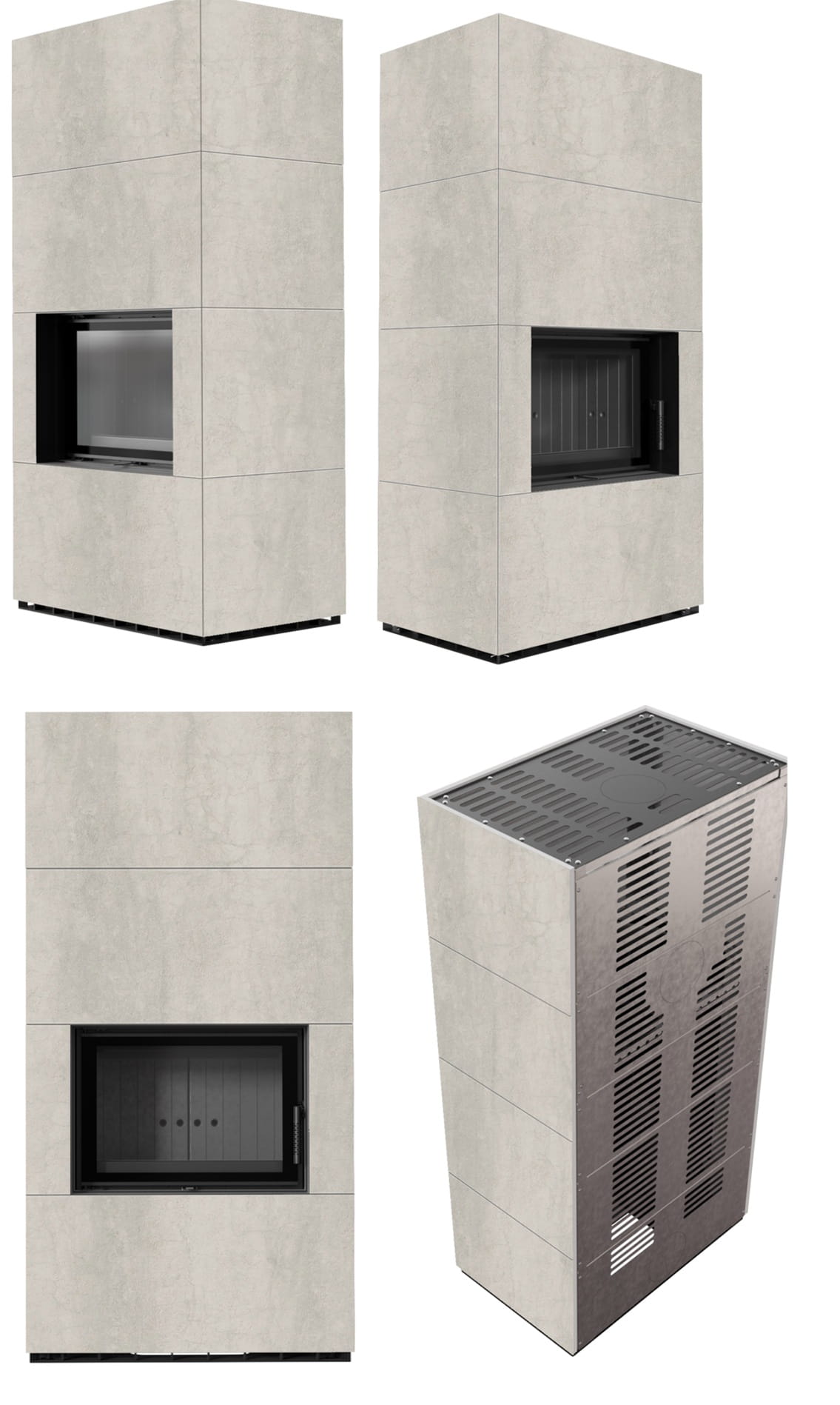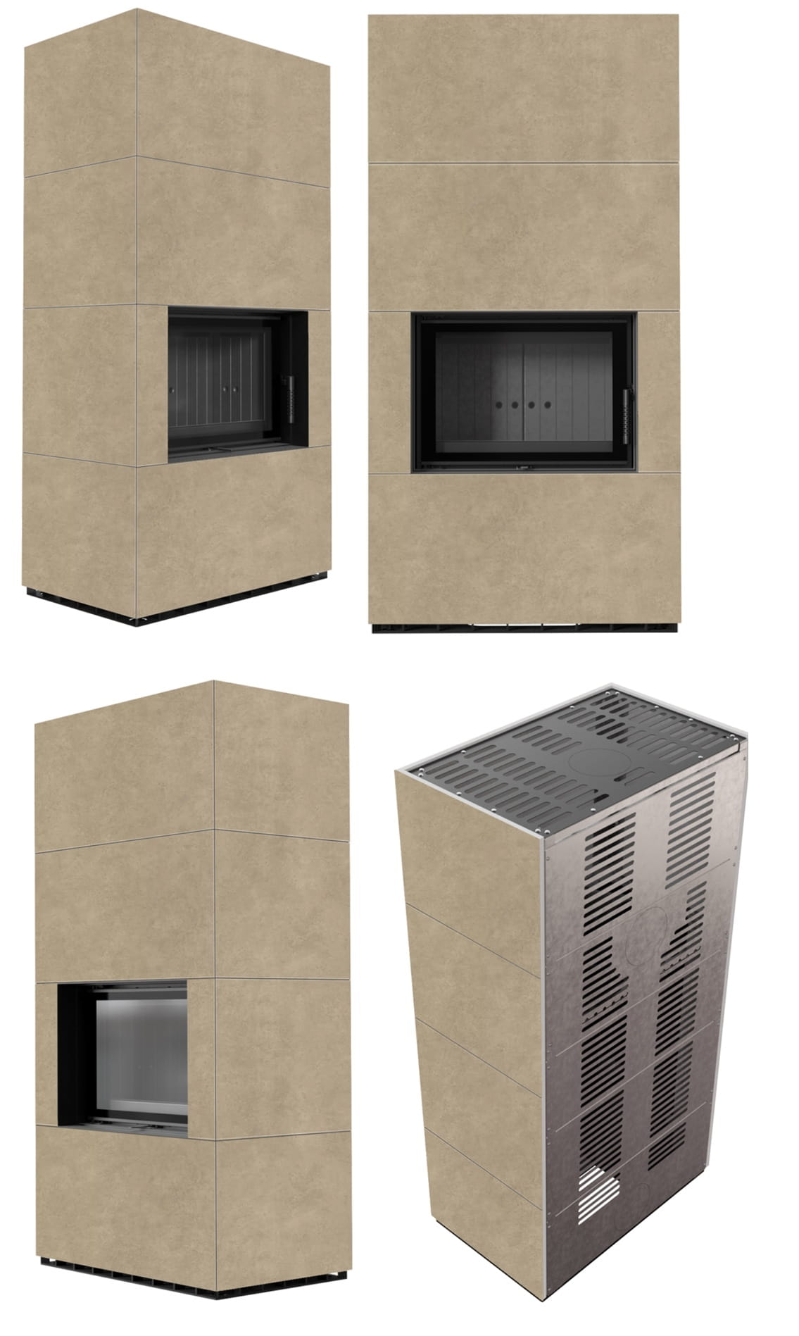 kominek modułowy powietrzny stalowy Floki S BOX z czarnym termotec + dolot, zabudowa ze spieku, wylot fi 160, moc 8 kW