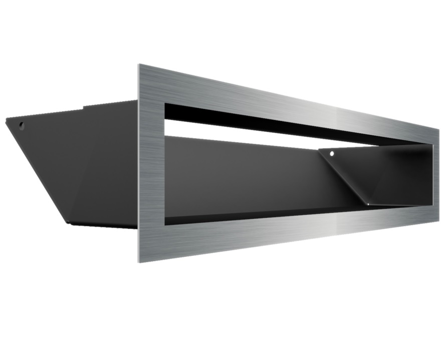 Kratka LUFT 45S wyróżnia się nowoczesnym i minimalistycznym wyglądem. Kratka posiada zamaskowany wlot powietrza – wykonany pod kątem 45 stopni oraz front bez widocznych łączeń.