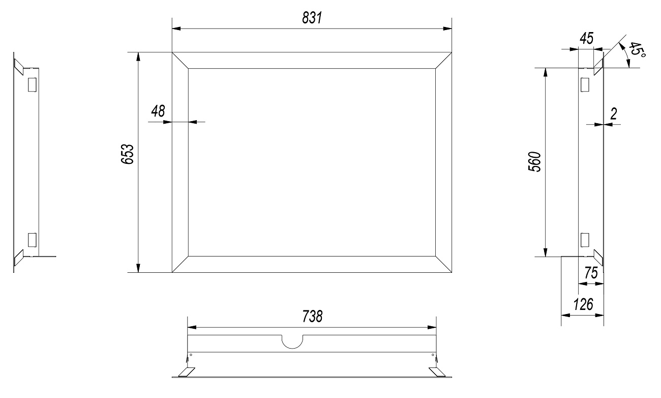 Nowoczesna stalowa ramka ozdobna do wkładu kominkowego MBA 17 gilotyna.