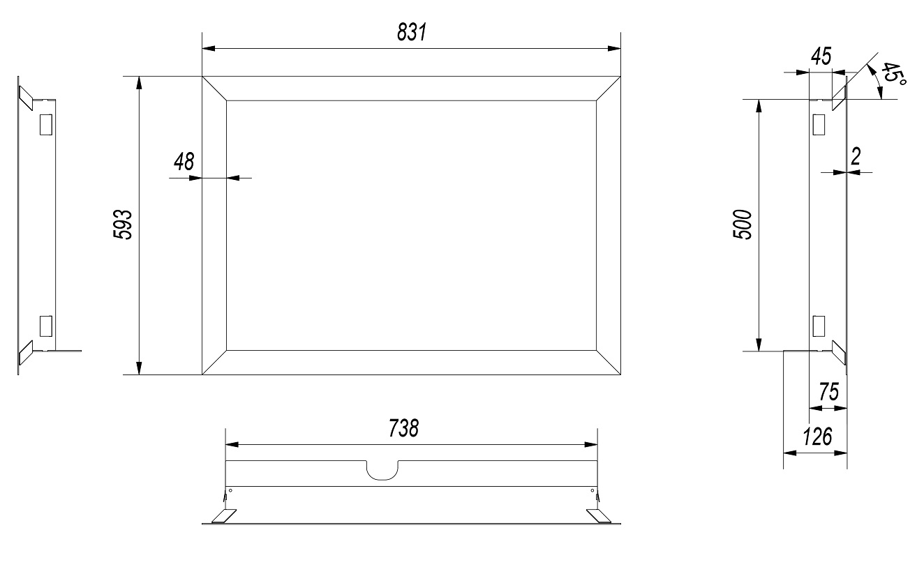 Nowoczesna stalowa ramka ozdobna do wkładu kominkowego MBO 15 gilotyna.