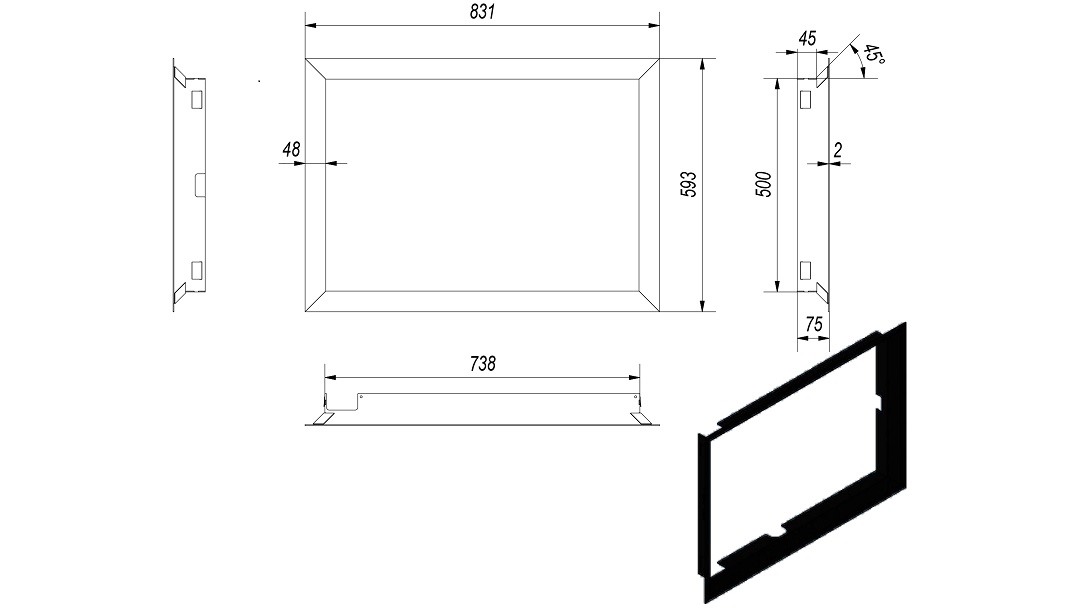 Nowoczesna stalowa ramka ozdobna do wkładu kominkowego powietrznego i z płaszczem wodnym MBO 15 z prostym frontem.