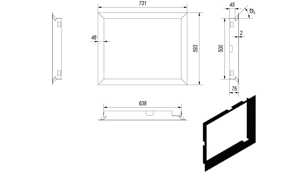 Nowoczesna stalowa ramka ozdobna do wkładu kominkowego powietrznego i z płaszczem wodnym MBZ 13 z prostym frontem.