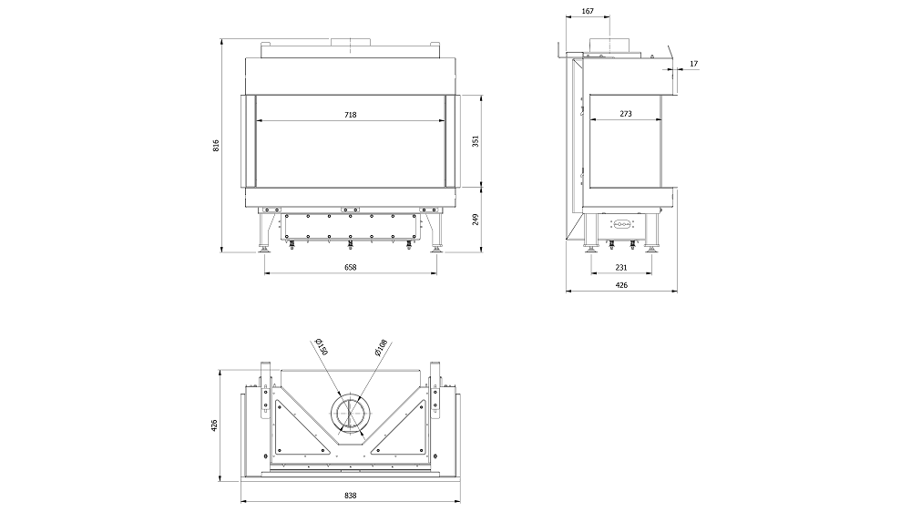 3. Niewidoczna ramka fasady, minimalna ilość widocznych elementów stalowych; niezakłócona wizja ognia.