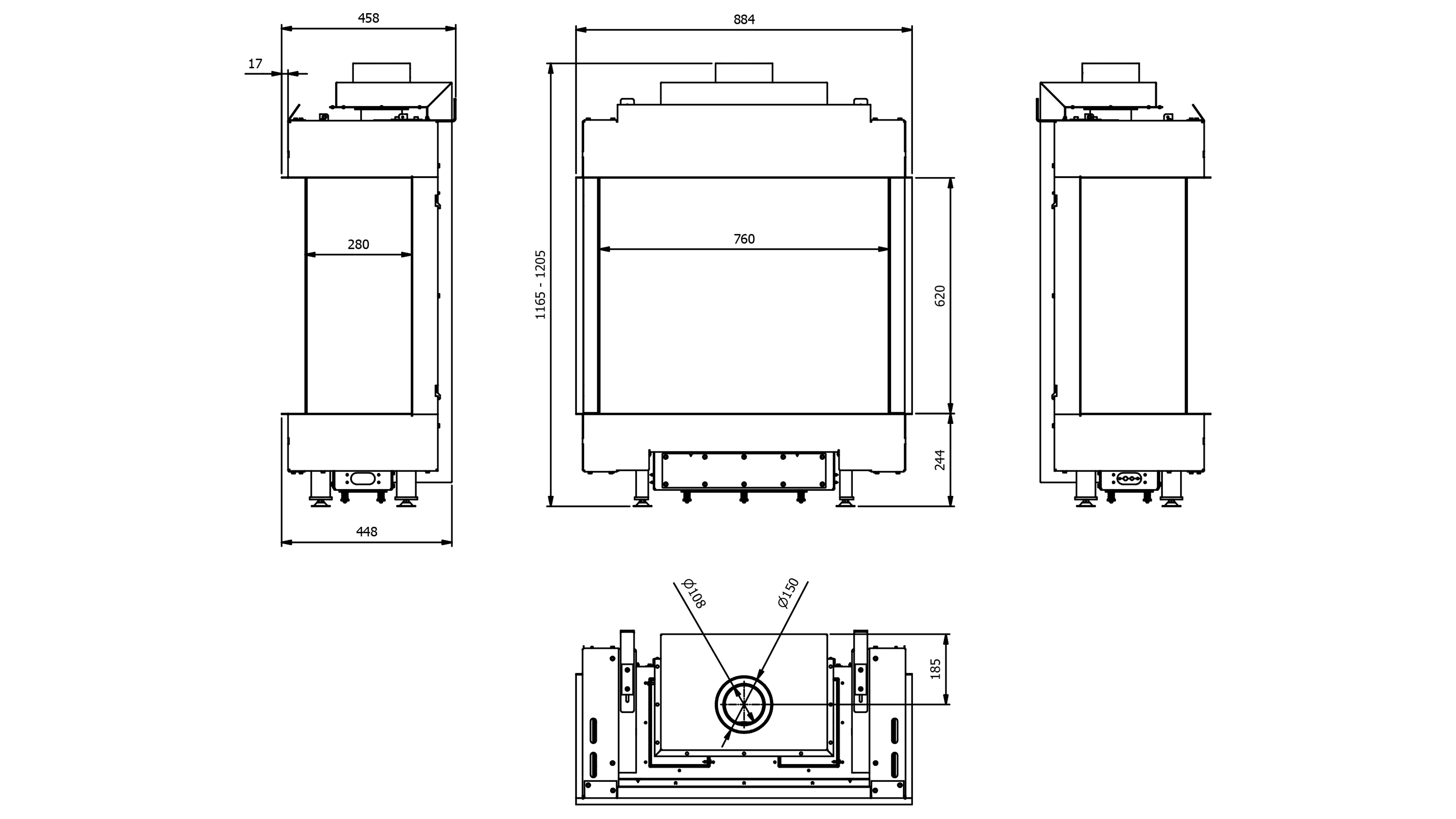 Hermetycznie zamknięta komora spalania, która daje najwyższy stopień bezpieczeństwa; przy jakichkolwiek problemach z drożnością przewodu powietrzno-spalinowego lub dopływu gazu kominek jest automatycznie wyłączany.
