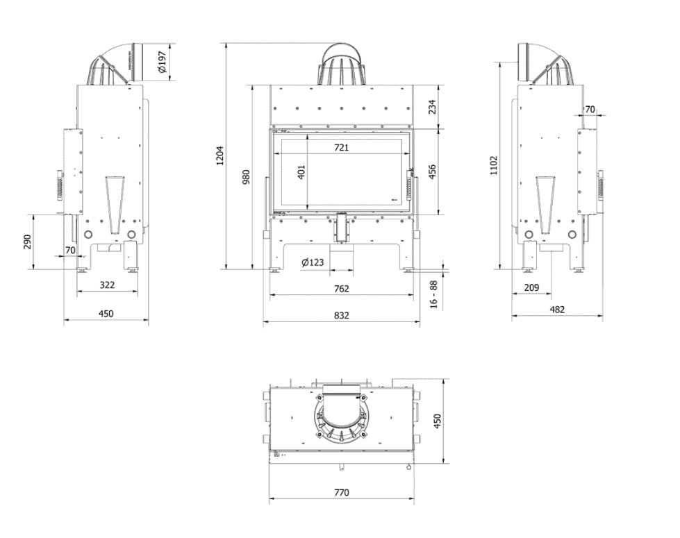 - Wyjmowany ruszt i popielnik ułatwiają utrzymanie wkładu w czystości.
