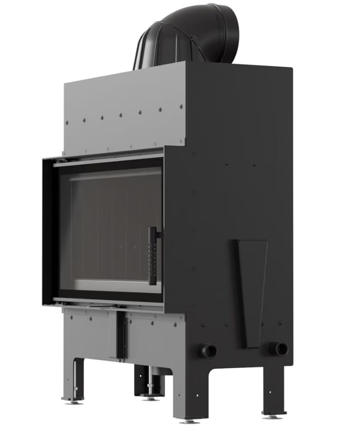 wkład kominkowy powietrzny stalowy Floki M z czarnym termotec + dolot, wylot fi 200, moc 10kW