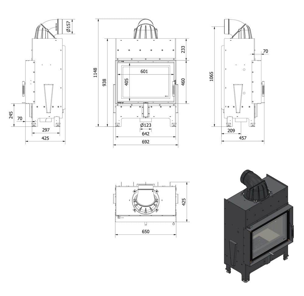 - Wyjmowany ruszt i popielnik ułatwiają utrzymanie wkładu w czystości.