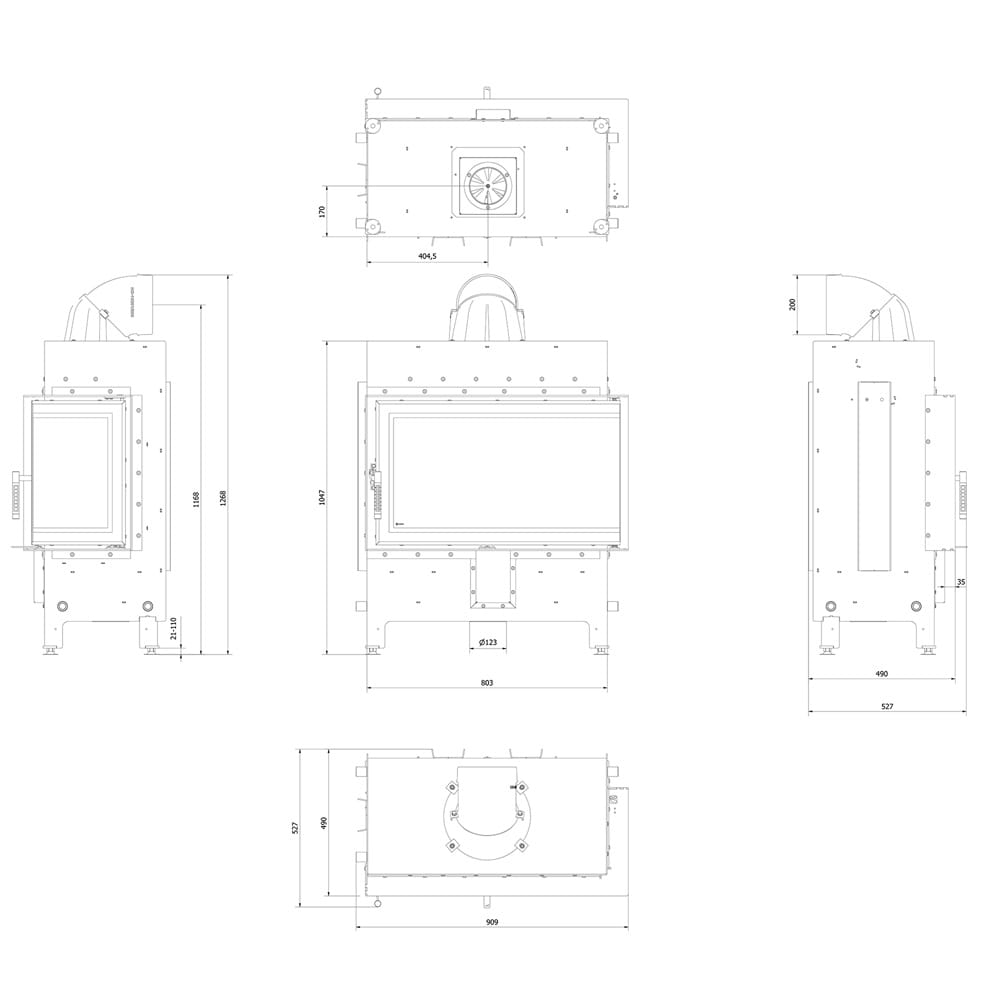 - Wyjmowany ruszt i popielnik ułatwiają utrzymanie wkładu w czystości.